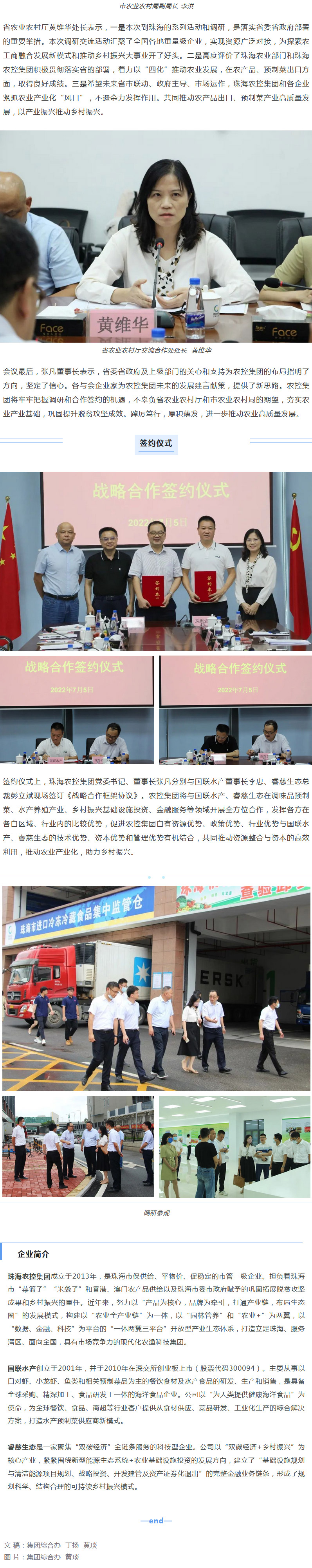 省农业农村厅领导率企业代表调研彩神网站网页版集团并见证签约