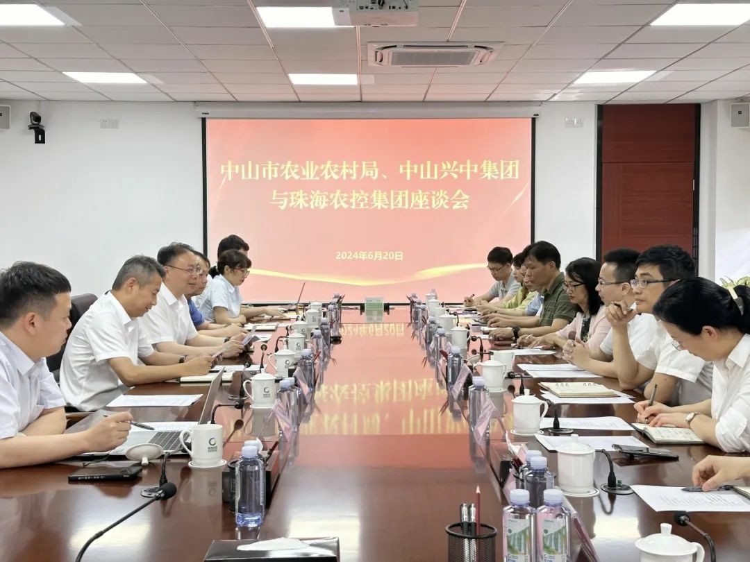 6月20日,中山市农业农村局党组成员、副局长邓金敏,中山兴中集团党委书记、董事长李嘉航一行到彩神网站网页版集团调研座谈。彩神网站网页版集团党委书记、董事长李鸿斌,副总经理钟华参加座谈。