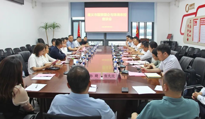 近日,遵义市国资国企领导一行调研农控农产品物流园并座谈交流。遵义市政府党组成员、副秘书长赵亮,遵义市国资委党委书记、主任陈林,遵义市委组织部部务委员姚青,遵义市国资委党委委员、副主任罗欣,广东省粤黔协作工作队遵义工作组成员王栋,农控集团副总经理肖军参加座谈会。