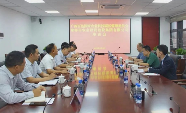 5月9日上午,广西百色国家农业科技园区管理委员会主任王晓一行到彩神网站网页版农产品物流园调研参观并在农控集团会议室交流座谈。农控集团党委书记、董事长张凡,副总经理肖军参加座谈会。
