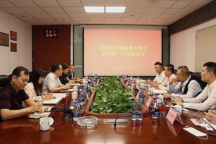 2022年5月6日上午,绿城置业发展集团有限公司华南区总经理姚安桃一行到访彩神网站网页版集团,双方就推进合作发展相关事宜开展深入交流。彩神网站网页版集团党委书记、董事长张凡,党委委员、副总经理薛萍参加了会谈。