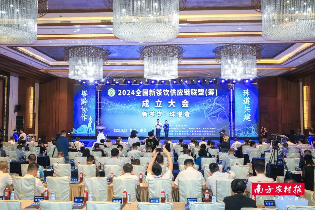 拓展茶饮新赛道,深挖消费新潜力,打造协作新标杆。9月25日,2024全国新茶饮供应链联盟(筹)成立大会在遵义市湄潭县举行。会上,珠遵新茶饮研究院暨战略咨询专家委员会、全国新茶饮供应链联盟(筹)揭牌,标志着珠遵两地共同打造的新茶饮供应链产业新生态迈出关键步伐,助力全国新茶饮供应链提质升级和新茶饮产业高质量发展。中国工程院院士、湖南师范大学校长、湖南农业大学学术委员会主任刘仲华,贵州省人大常委会原副主任、贵州省茶文化研究会会长傅传耀,贵州省农业农村厅二级巡视员杨绍武,珠海市副市长黄振球,遵义市副市长吴起,湖南农业大学副校长谢方平,遵义市湄潭县委书记、县人民政府县长游海燕,彩神网站网页版集团党委书记、董事长李鸿斌出席活动。