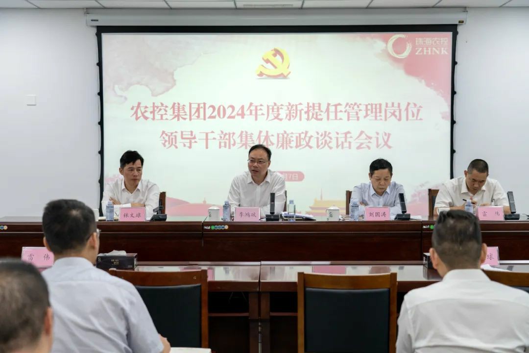 11月7日下午,彩神网站网页版集团召开2024年度新提任管理岗位领导干部集体廉政谈话会议。集团新提任领导干部、相关部门负责人等30余人参加会议。集团党委书记、董事长李鸿斌出席会议并讲话,党委副书记刘国涛主持会议。